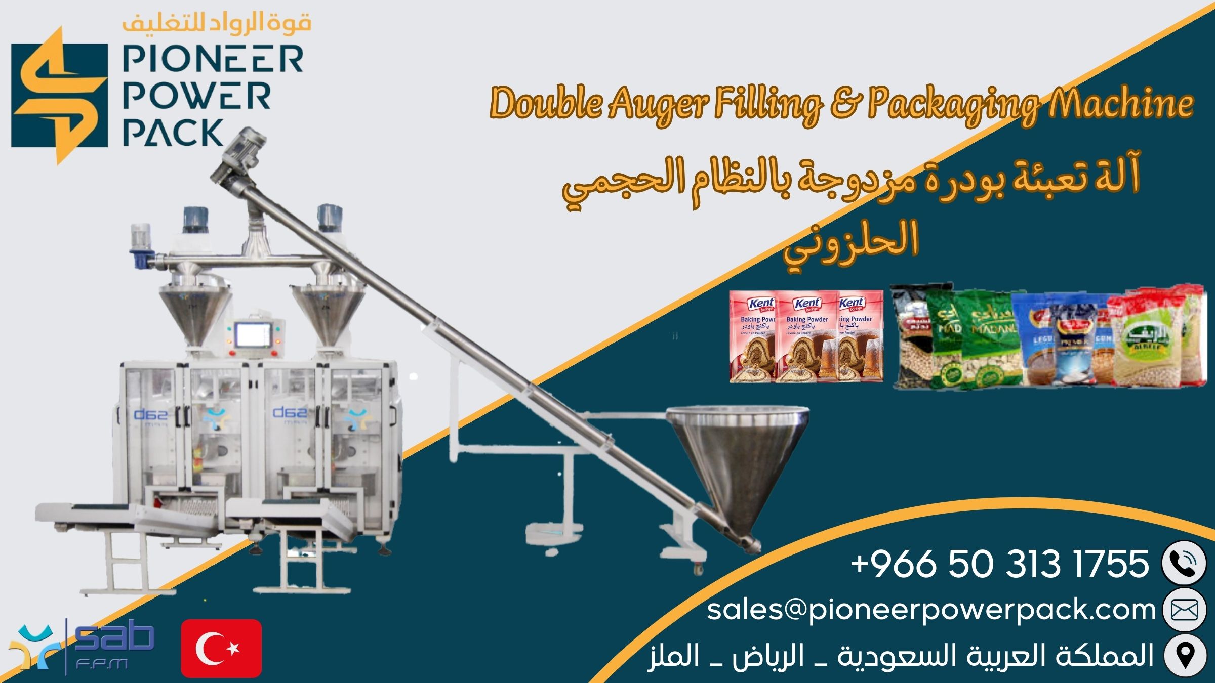 Double screw powder filling machine with volumetric system