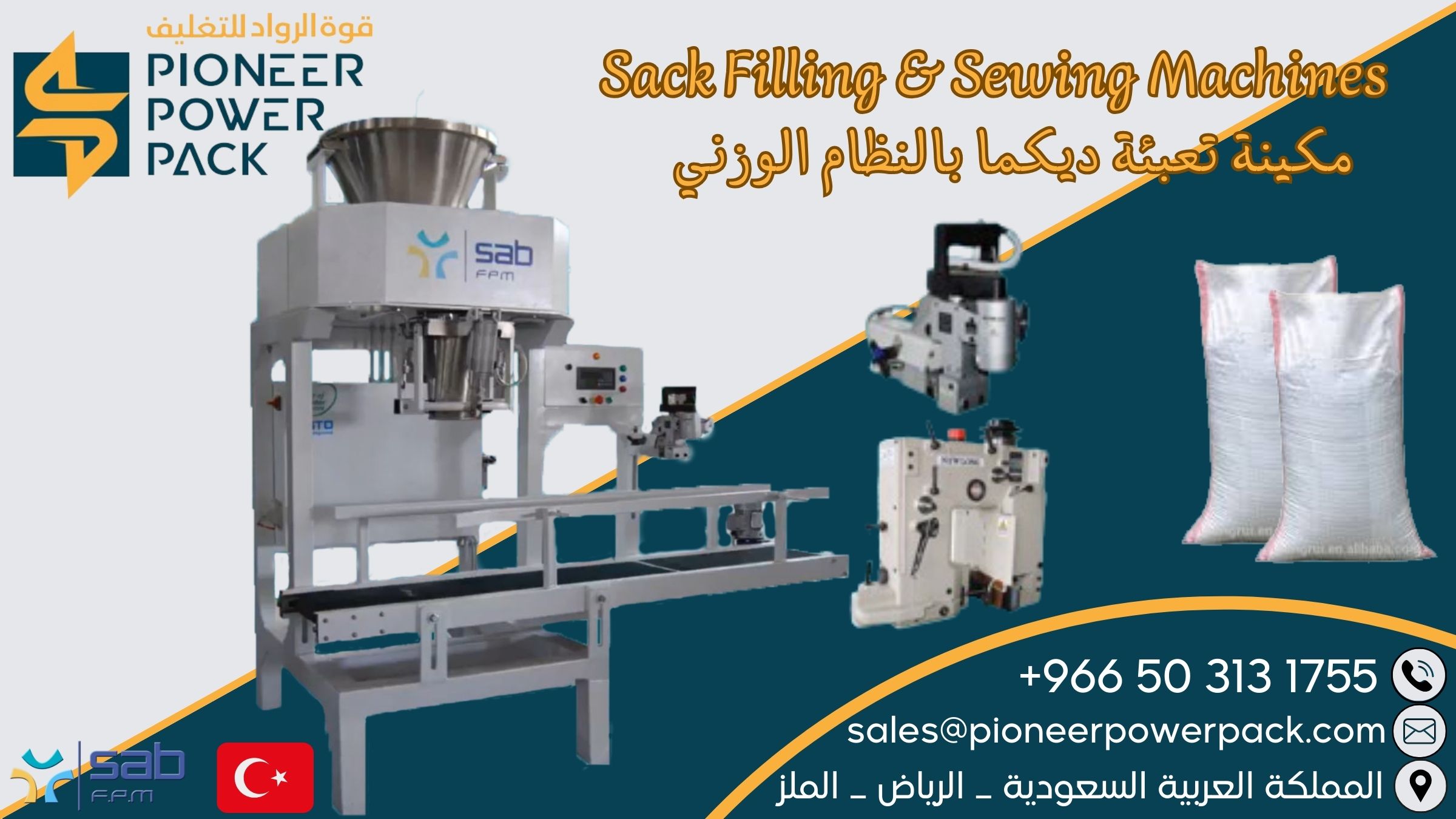 Double packing machine for large bags (Dikma) for granules and powders using the gravimetric system (two systems for closing the bags - stitching or continuous reciprocating welding)